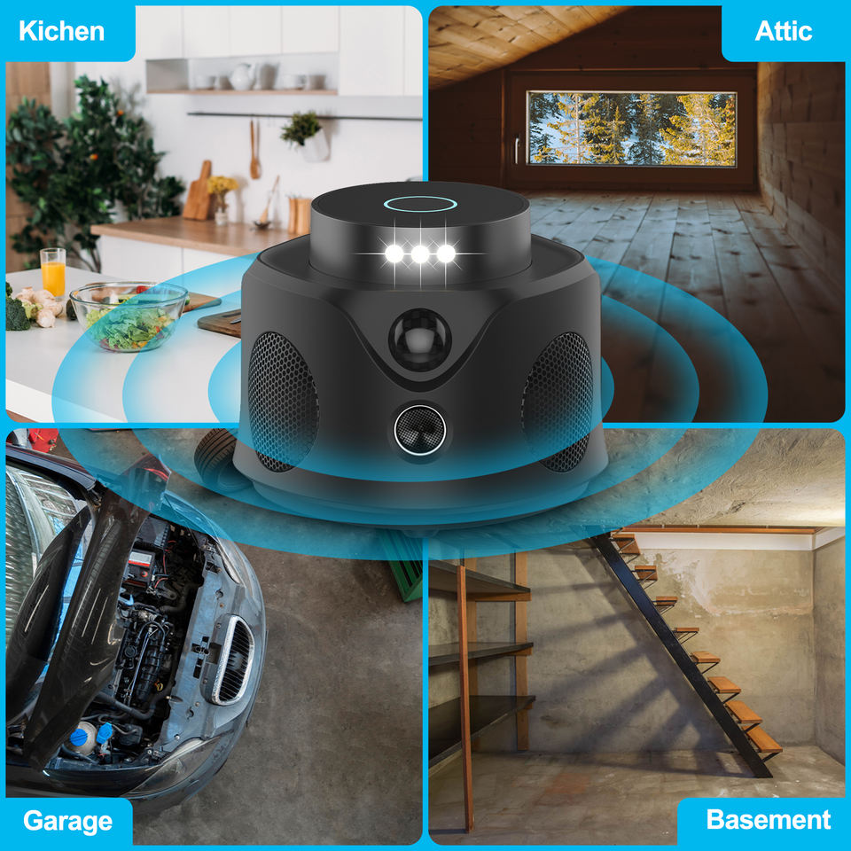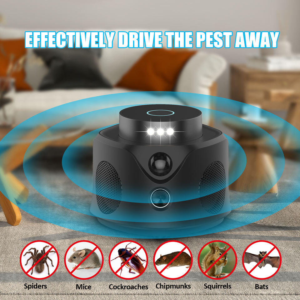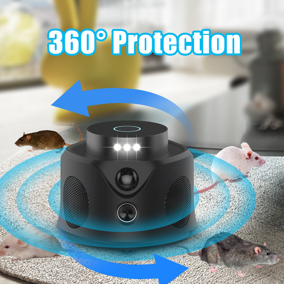 Répulsif antiparasitaire ultrasonique 360° avec 9 lumières stroboscopiques et PIR, repousse efficacement les souris, les cafards, les rongeurs, à brancher, répulsif antiparasitaire pour rongeurs