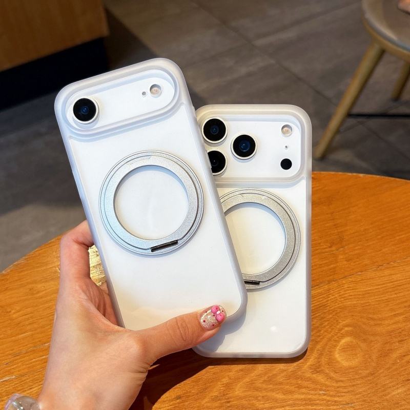Coque de Téléphone Magnétique Antichoc avec Support Béquille Rotatif à 360° et Transparence Cristalline pour iPhone 17 16 15 14 Pro Max