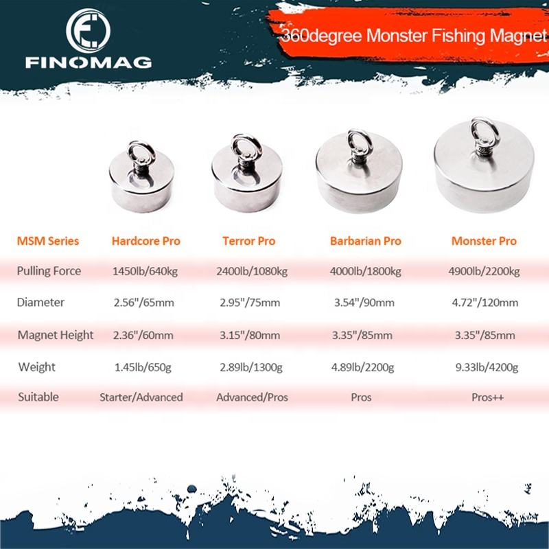 Aimant de pêche de 3600 lb, kit complet d'aimants de pêche avec aimant à 360 degrés de 4000 lb, corde + mousqueton, colle filetante et gants