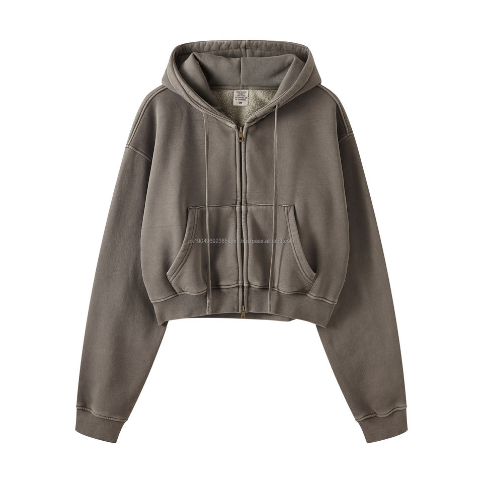 360Gram Fleece zipper cotton made Hoodie women's Fashion hoodies zipper Jacket solid color dyed casual wear Cropped Hoodie