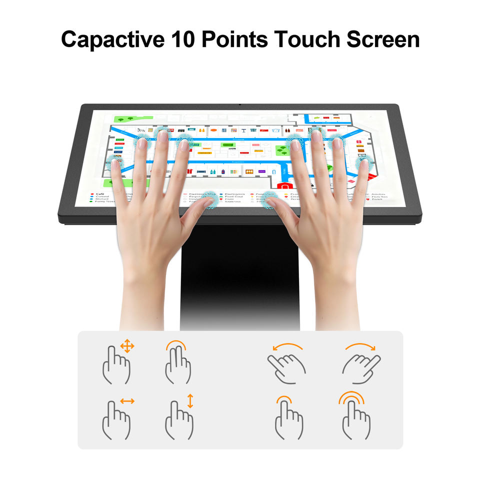 Kiosque tactile capacitif LCD 360SPB à 20 points, système d'exploitation Android 11, résolution 1920x1080, CMS intégré, garantie 5 ans, centre commercial