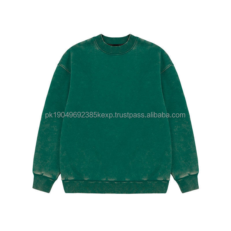 360gsm Luxury Crewneck Fleece Sweatshirt Men Custom Acid Wash Vintage Cotton Thick Crew Neck Sweatshirts With Kangaroo Pockets