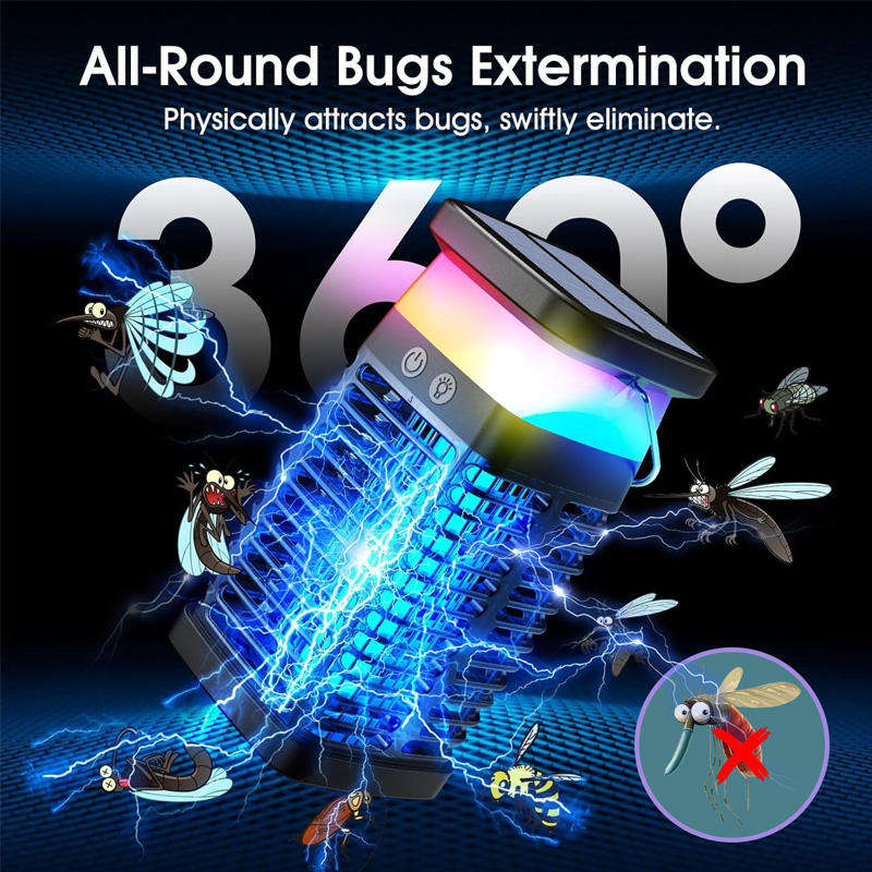 Lampe anti-moustiques LED 365 nm multifonction avec lecteur USB et panneau solaire pour la maison, le jardin, l'intérieur et l'extérieur