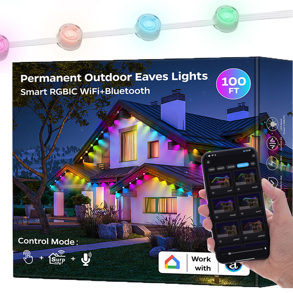 Guirlande lumineuse de Noël 36V Rgbic pour extérieur, décorative, étanche IP67, à LED, programmable, permanente, pour extérieur