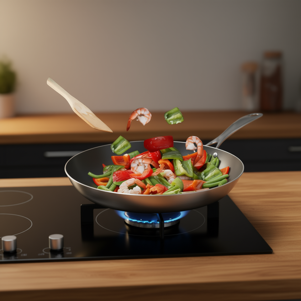 Poêle à frire antiadhésive en acier inoxydable 36 cm compatible induction extra large, ustensile de cuisine professionnel