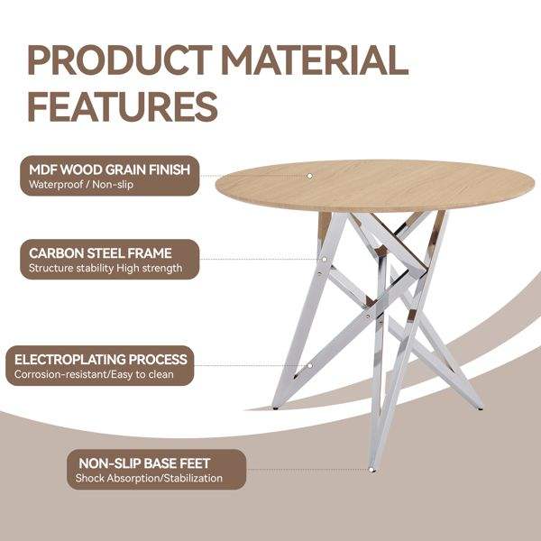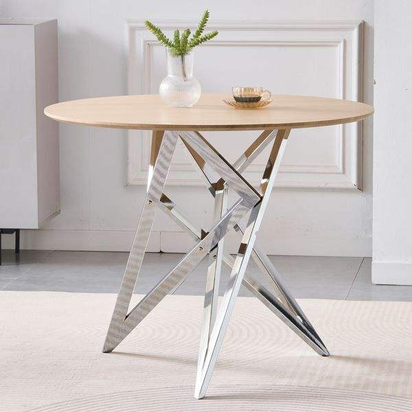 Table à manger ronde moderne de 37 pouces avec pieds en métal argenté pour 2 à 4 personnes, petite table de cuisine pour une utilisation optimale de l'espace