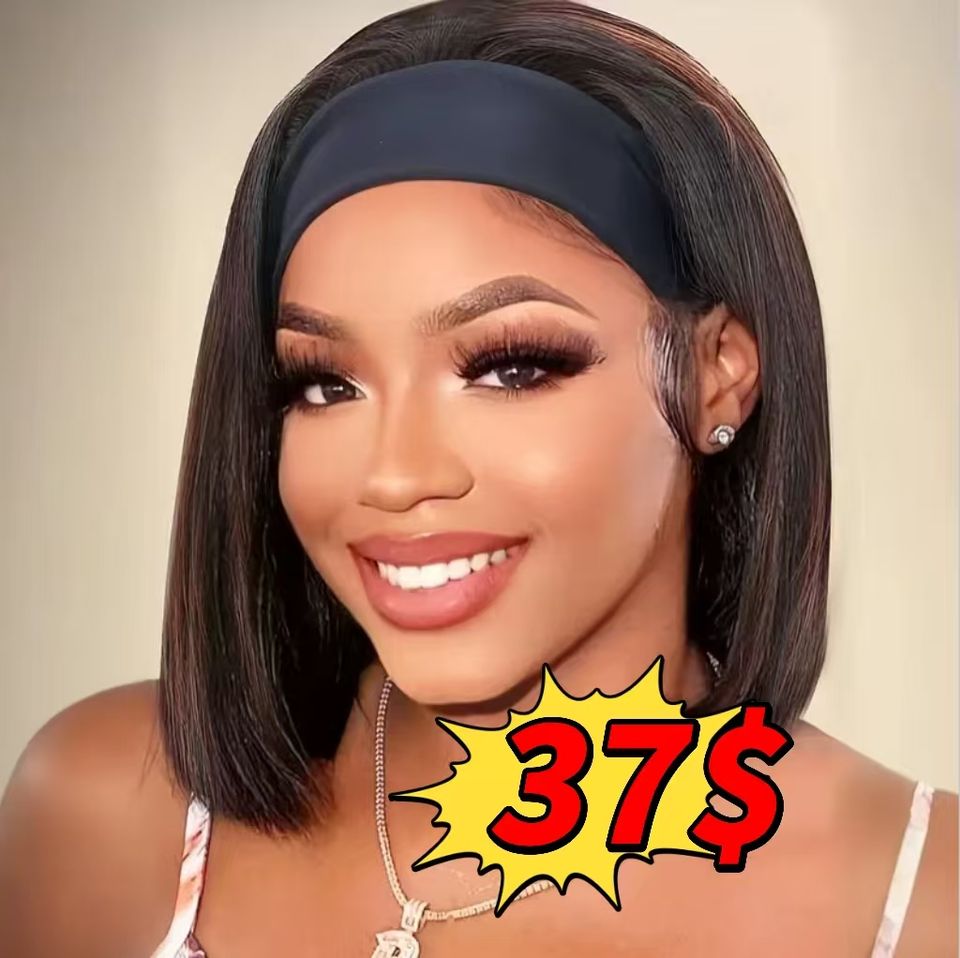 Promotion à 37 $ Letsfly Perruques Bob à bandeau en cheveux vierges bruts vietnamiens de qualité 12A, ultra-lisses, 10 et 12 pouces, colorées