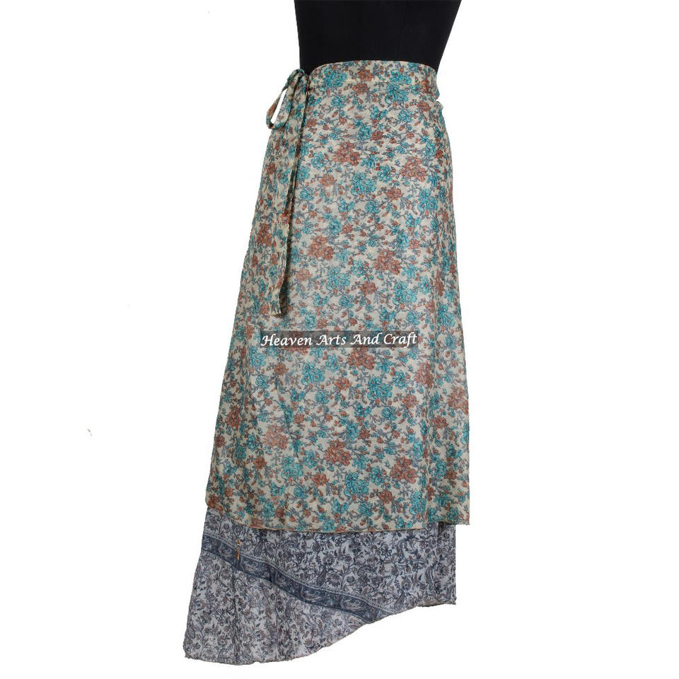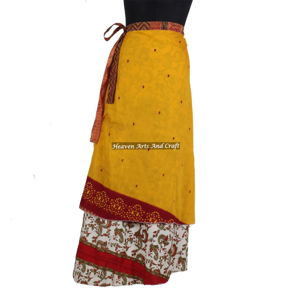 Jupe longue en soie de sari recyclée Magic Wrap de 38 pouces, style réversible, robe bohème pour femme, soie de sari vintage, longue, à enrouler
