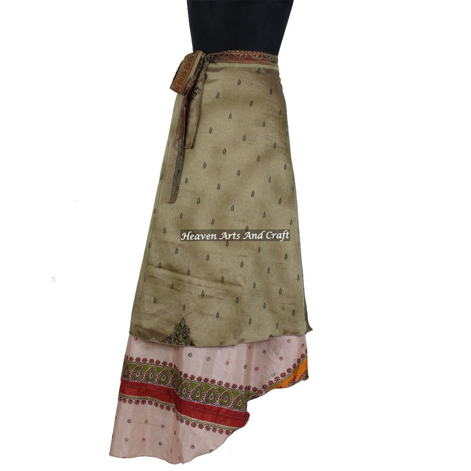 Jupe longue en soie à deux couches de 38 pouces, design attrayant, style vintage, bohème, pour femme, sarong pareo magique de 38 pouces