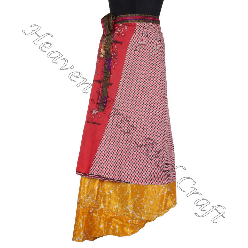 Jupes portefeuille en soie sari de 38 pouces de long pour femmes, tenue décontractée, 2 couches réversibles, sarong en soie magique