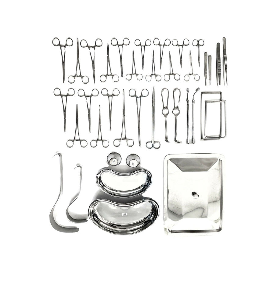 Pince médicale ISO de 38 pièces, ensemble d'instruments chirurgicaux, source d'alimentation manuelle en acier inoxydable pour la chirurgie de l'appendicectomie et de la hernie