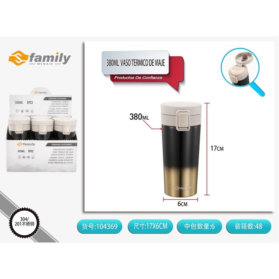 380ml Brown Thermal Travel Mug - Drinkware