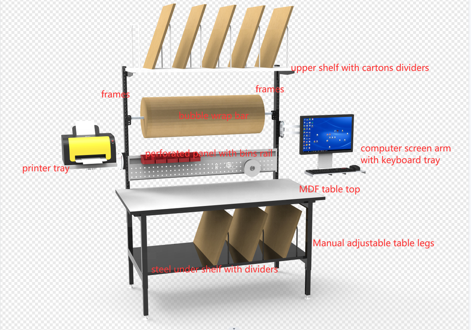 Type d'entreprise -- fabricant:Station/table d'emballage fonctionnelle pour l'emballage de colis en entrepôt