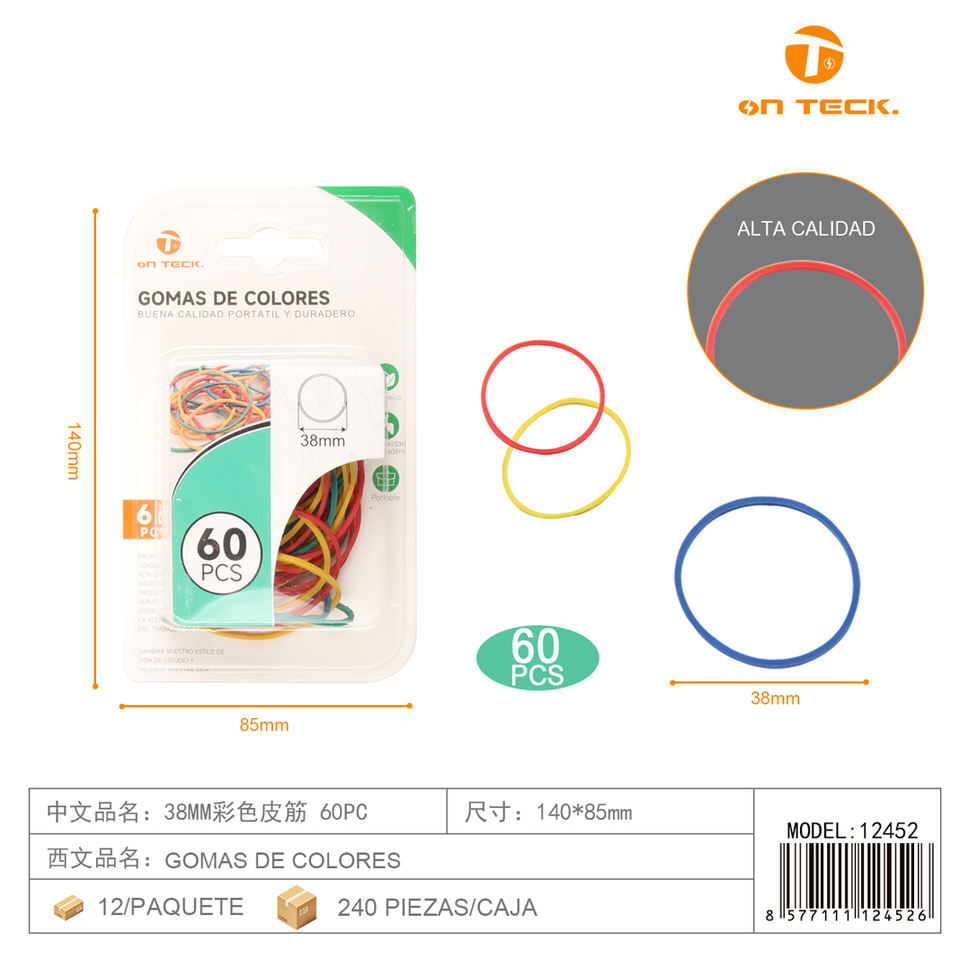 Bandes de caoutchouc colorées de 38MM 60PC Bandes de caoutchouc durables 38mm coloré 60pc durable portable bureau école 12452