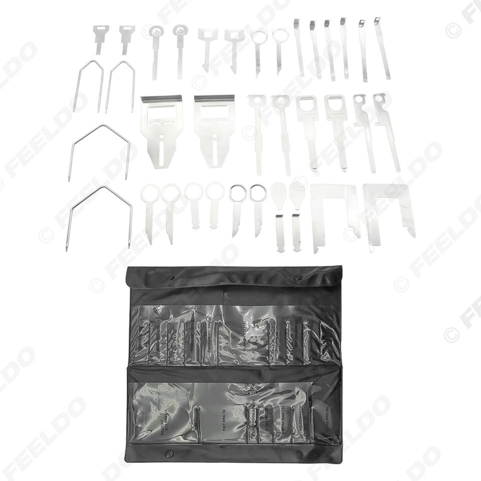 Kit d'outils de réparation pour le retrait de la Radio du lecteur CD, Audio stéréo, avec pochette robuste, outil de démontage intérieur des panneaux de porte de voiture, 38 pièces
