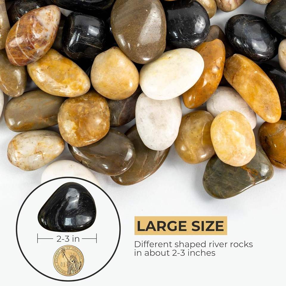 Galets et pierres de rivière mélangés de 38 lb, 2-3 pouces, polis, naturels, grands, pour aménagement paysager et décoration de vases