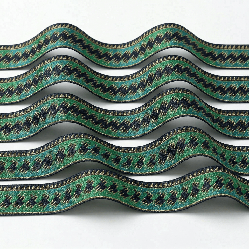 38mm Polyester Gold Striped Jacquard Ribbon Wholesale for Apparel Decoration Upholstery Craft Supplies and Home Textile Use