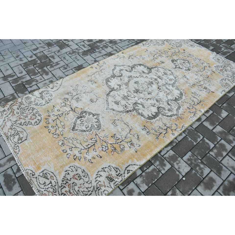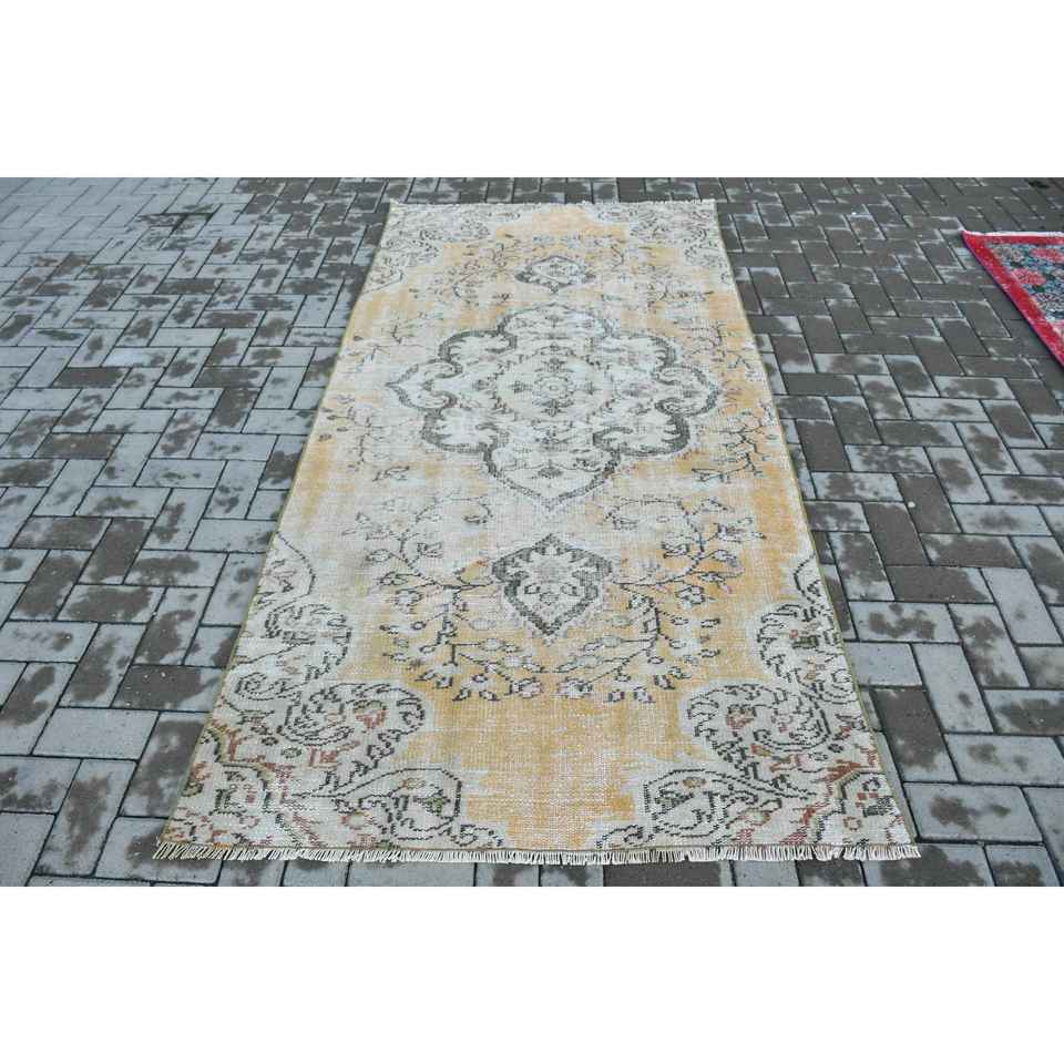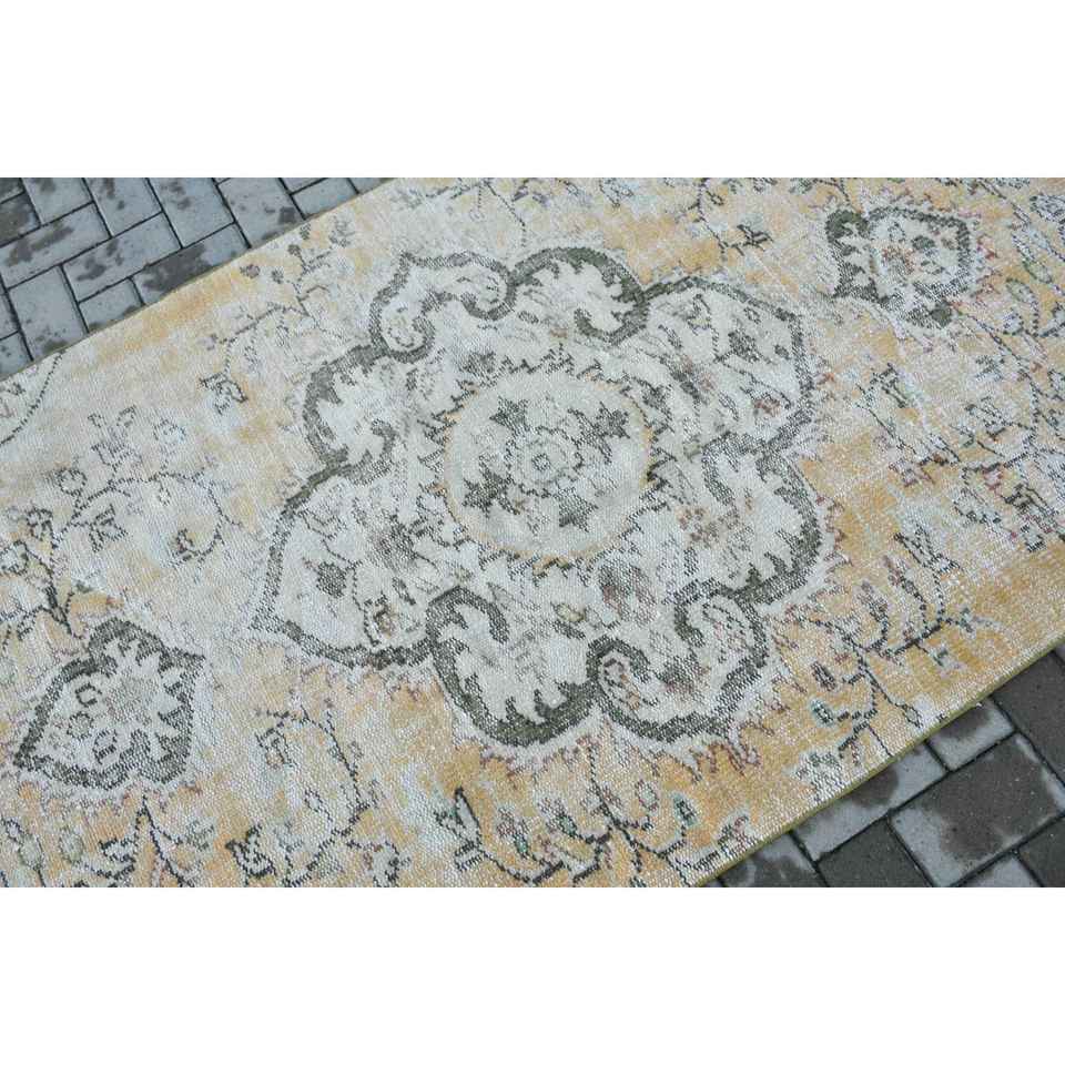 Tapis turc vintage 39,7x8 pieds, tapis surdimensionné, tapis en laine ombré jaune-gris