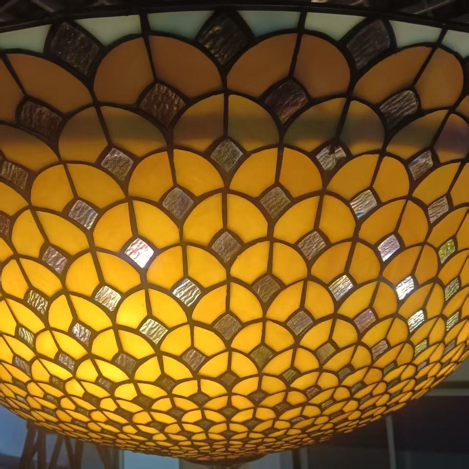 Lustre Tiffany en verre teinté de 39 pouces, motif écailles de poisson, pour salon, hall et entrée - Fournisseur d'usine