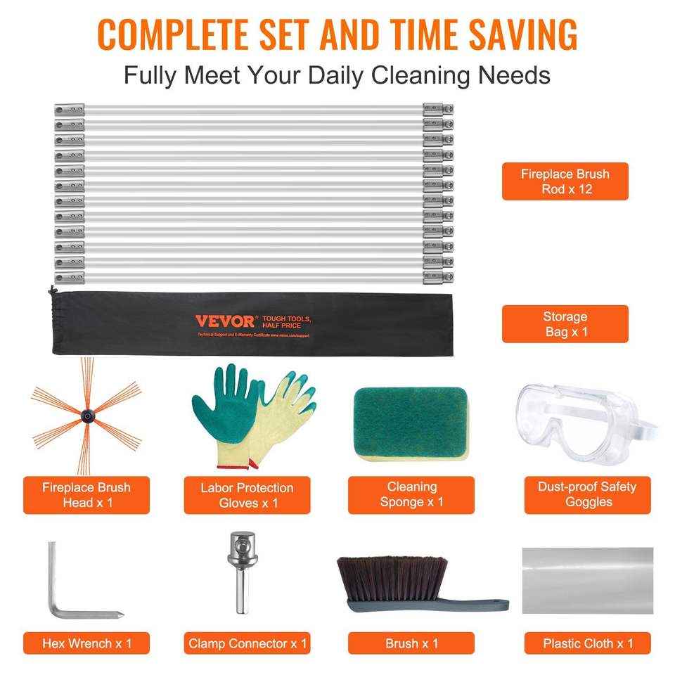 Kit de nettoyage de cheminée de 39 pieds avec 12 tiges flexibles en nylon renforcé, ergonomique, nettoyage à 360 degrés, accessoires pour cheminée