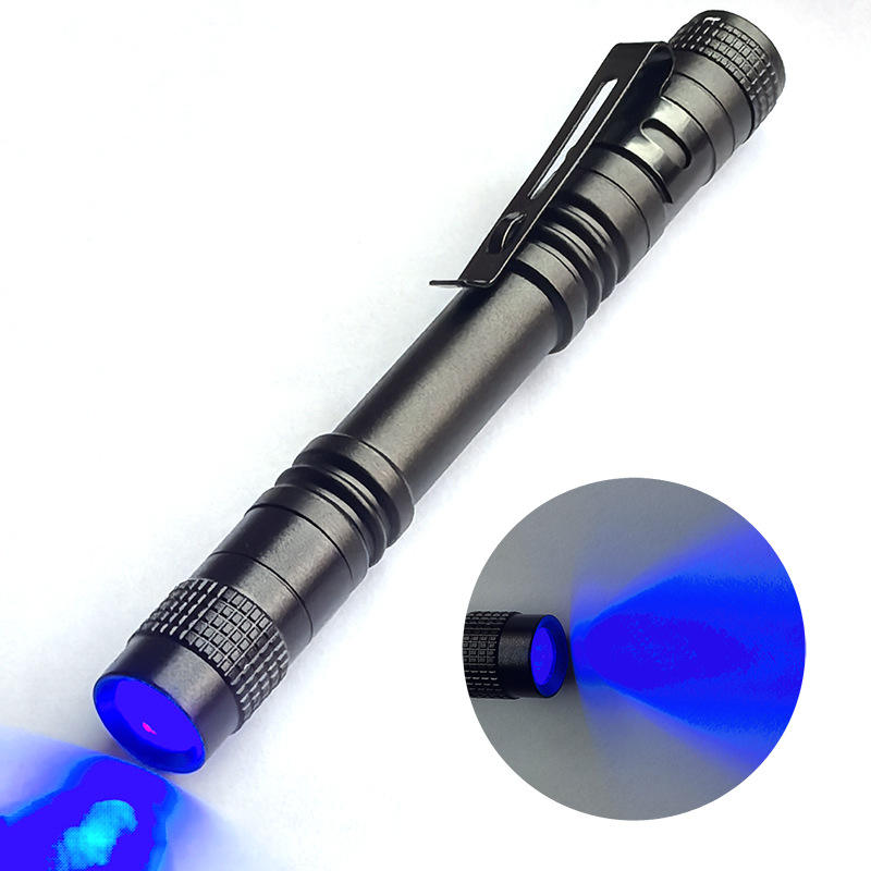 395nm UV Mini LED Stylo Lumière Lampe de Poche Portable Poche 3W Torche Ultraviolet Avec Clip Détecteur De Monnaie D'argent