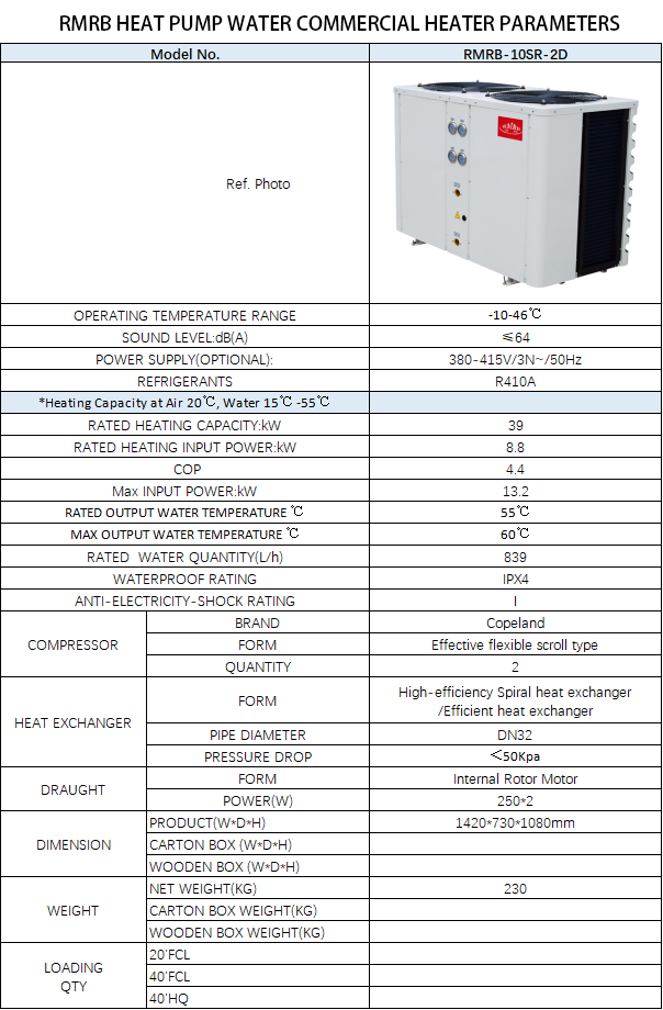 Pompe à chaleur intégrée air-eau à fréquence fixe 39 kW R410A, service OEM, système d'eau chaude pour hôtels commerciaux