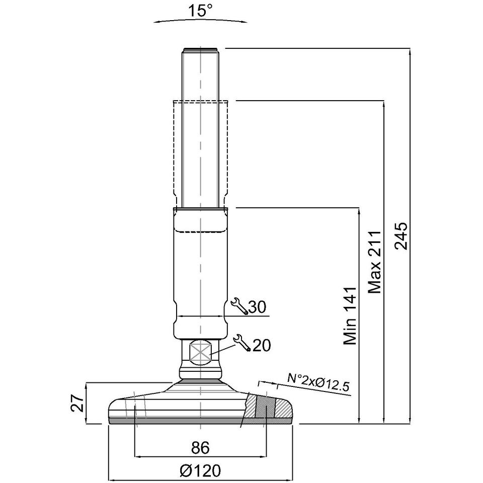 Pied de nivellement 27391F/3A certifié 3A en acier inoxydable avec fixation – support hygiénique réglable pour l'industrie alime