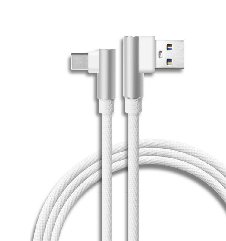 Câble coudé (90 °) 3A pour recharge rapide et transfert de données, cordon de chargeur à Angle droit et 90 degrés, adapté aux smartphones