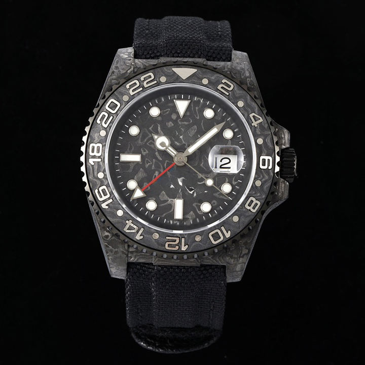 Montre tactique en fibre de carbone de qualité 3A pour homme, style modifié, fenêtre de date, grain unique, étanche 50m