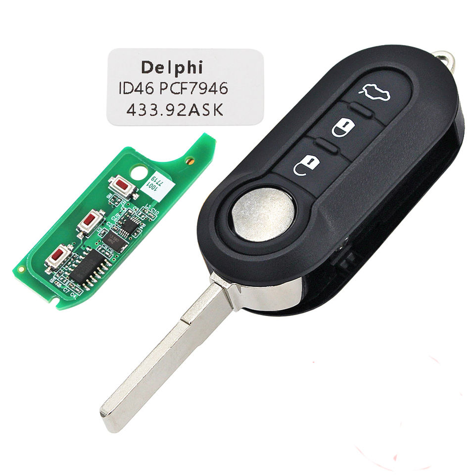 3B Remote Key for Fiat 500 Doblo Qubo Grande Punto 2006-2013 Delphi / Marelli BSI System 433.92ASK PCF7946 Replace Smart Key