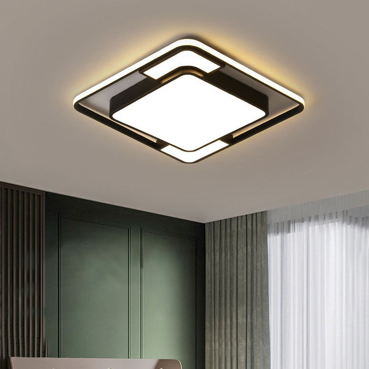 Lustre moderne rond carré en or noir 3CCT, lampe suspendue LED pour plafond, pour chambre à coucher