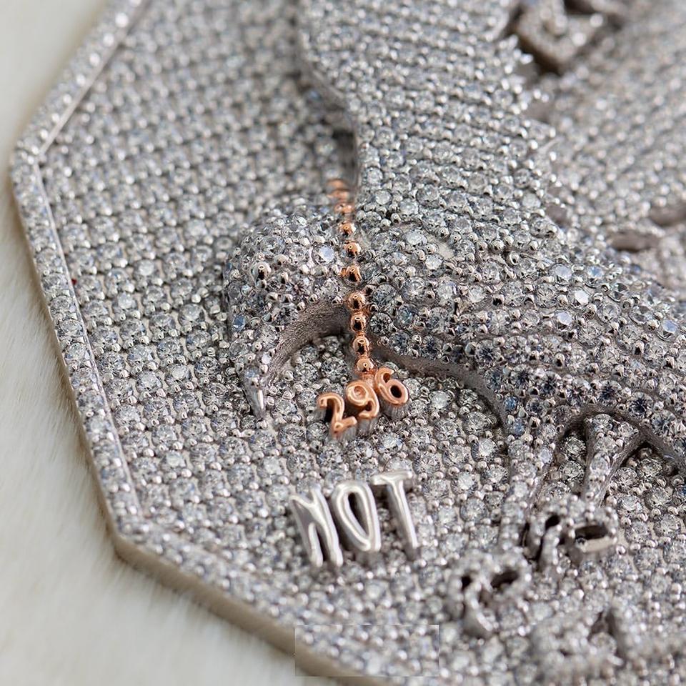 Pendentif à breloque 3CT avec logo et lettre en diamant rond Pendentif en or blanc 14k