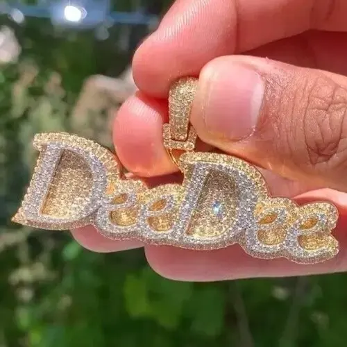 Pendentif personnalisé pour femme en moissanite véritable 3 carats, lettre gravée, argent sterling plaqué or, style hip-hop, cadeau pour occasion spéciale, Tishya Diamond