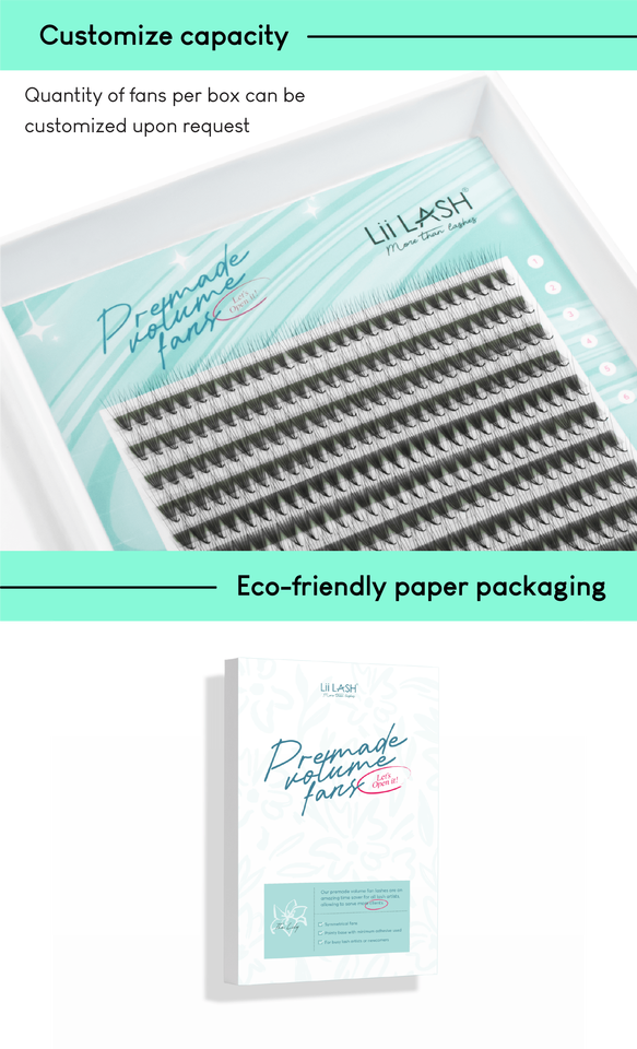3D-20D big tray premade eyelash fans instant cashmere volume matte black lash tray 0.03 0.05 0.07 wholesale lashes packaging box