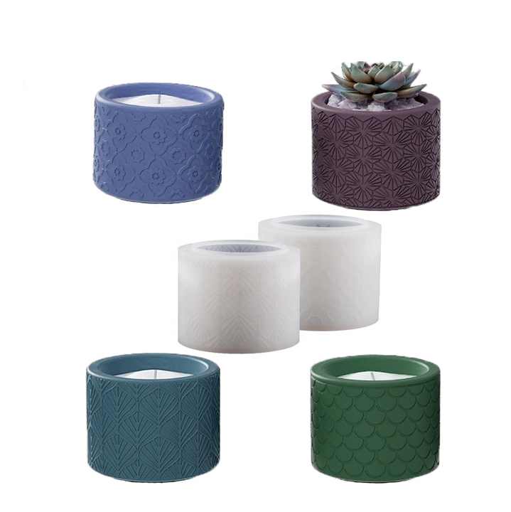 3D 4 modèles de fleur de prunier ligne graphique Ginkgo Biloba poisson écailles Surface cylindre moule en silicone pour bricolage résine vase succulent