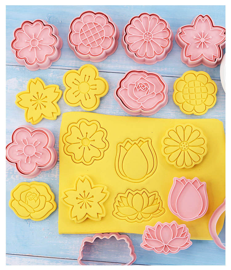 Name:8 Pack Spring Flower Cookie Cutters with Plunger Stamp Cookie Stamps