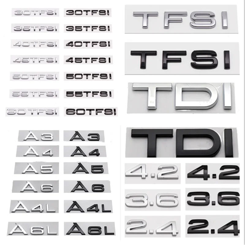 Autocollant de logo de coffre arrière ABS 3D 2.0 3.0 30 35 40 45 50 55 60 TFSI TDI V6T 4.0 T pour Audi A1 A3 A4 A5 A6 A7 A8 Q2 Q3 Q5 Q7