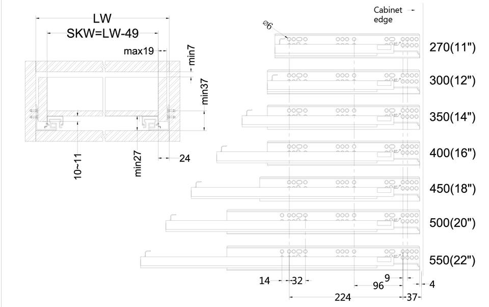 Caractéristique:Extension complète, Installation facile, 3 fois, Silencieux, Fermer doux