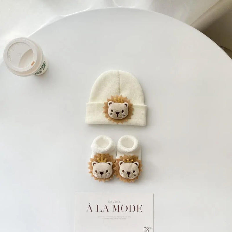 Ensemble de chaussettes et bonnet pour bébé en coton 3D dessin animé, vente en gros, chaussettes pour nouveau-nés filles et garçons, ensemble de chaussettes et bonnet mignon pour bébé