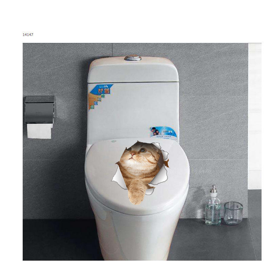 Autocollant décoratif 3D pour siège de toilette en forme de chat, en PVC, imperméable, pour la décoration de la salle de bain