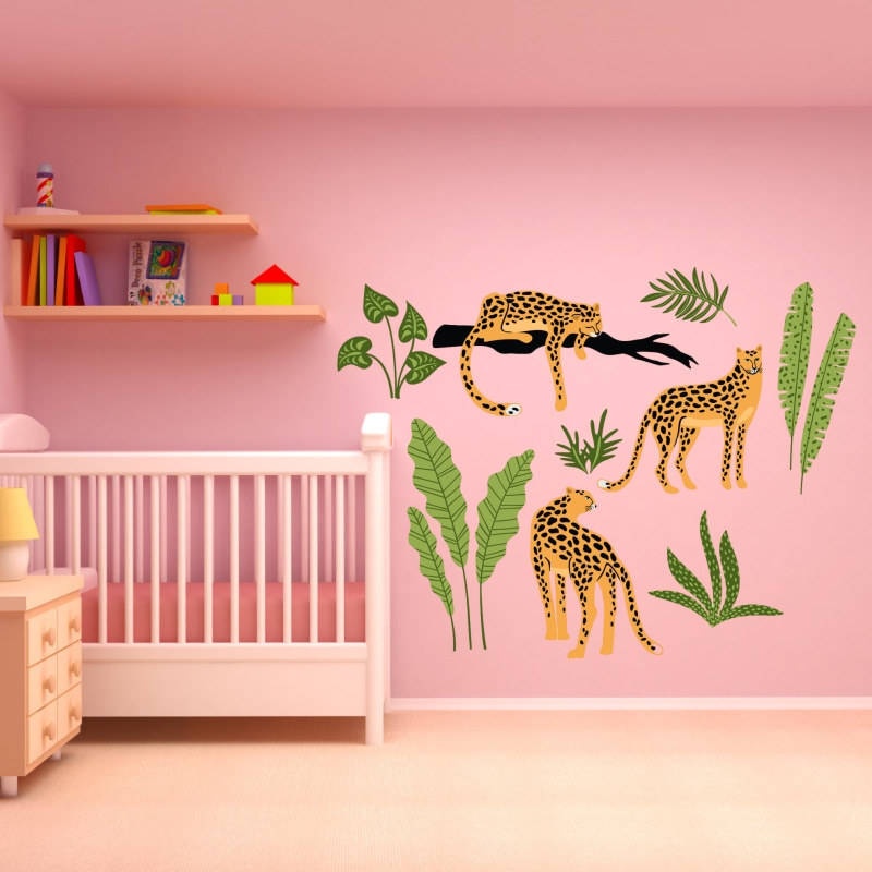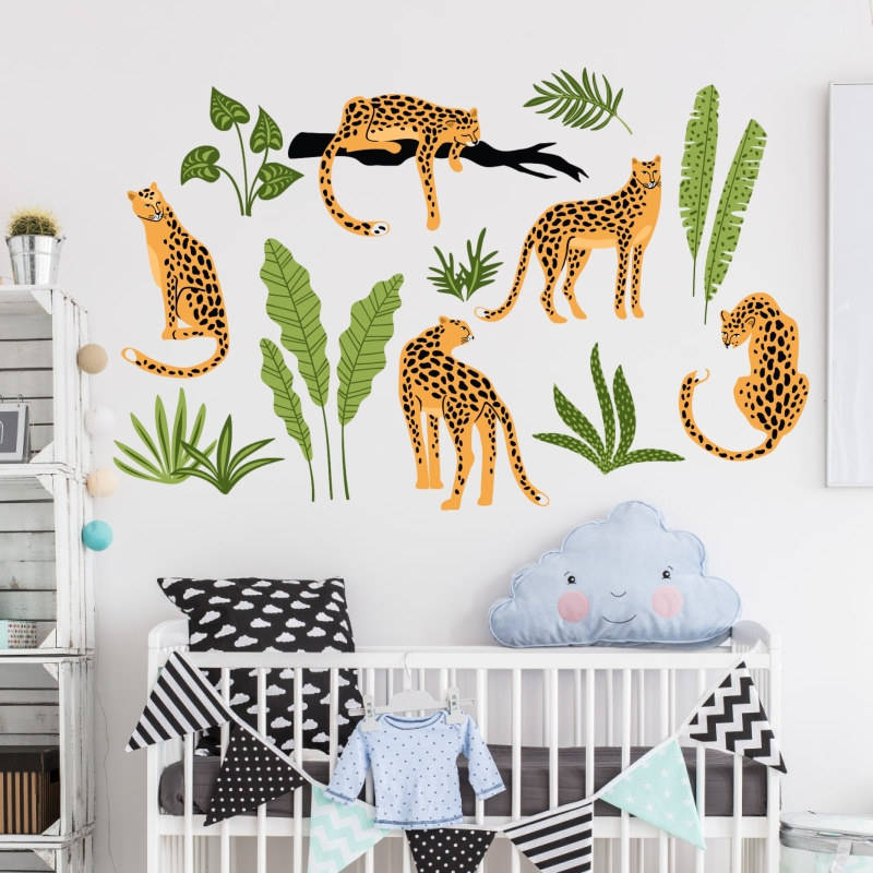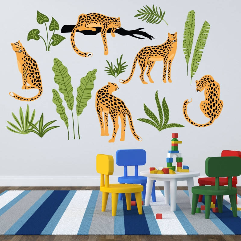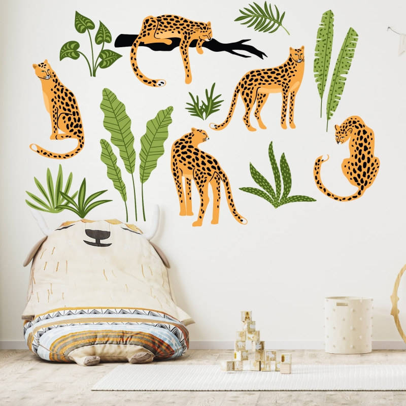 Sticker mural 3D pour enfants Papier peint léopard feuille tropicale sauvage Stickers muraux amovibles autocollant mural personnalisé autocollant mural