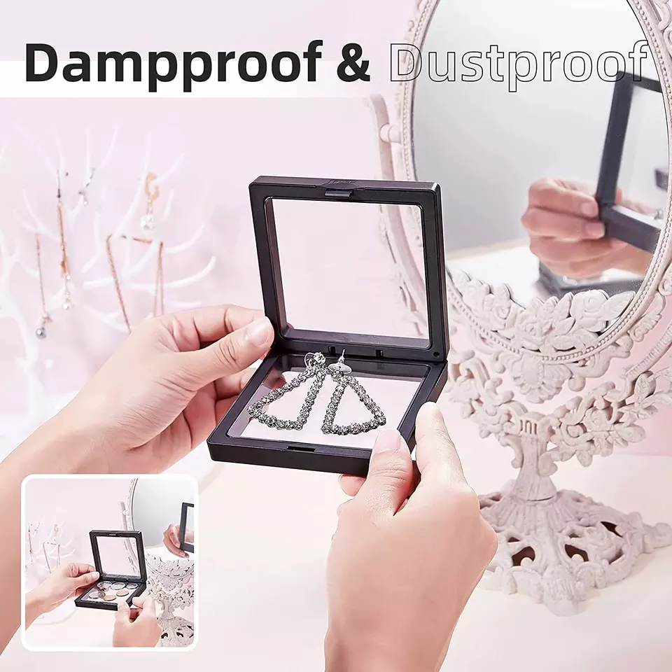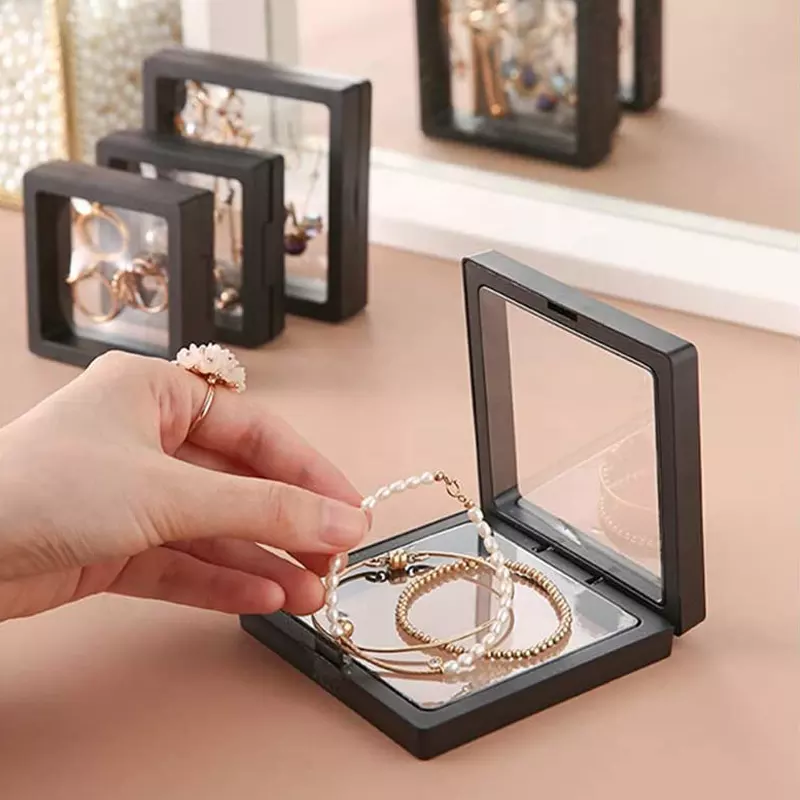 Boîte de présentation de bijoux en acrylique avec cadre flottant en film PE transparent 3D, pour médailles, bracelets, organisateur de bijoux, emballage cadeau