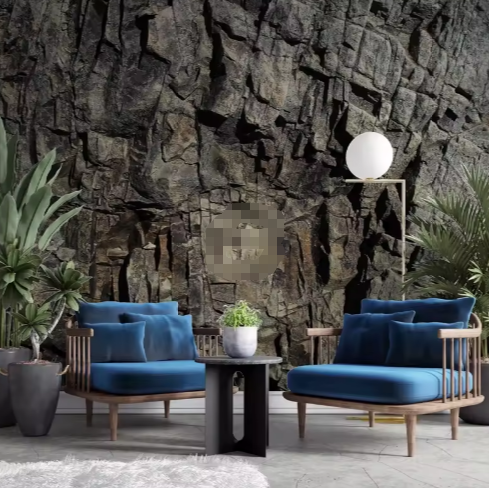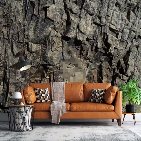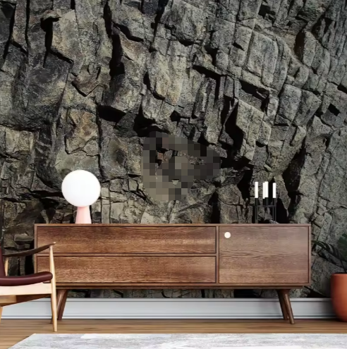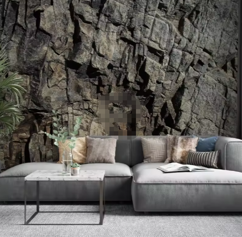 Papier peint autocollant 3D Cliff Dark Stone Texture murale en bois