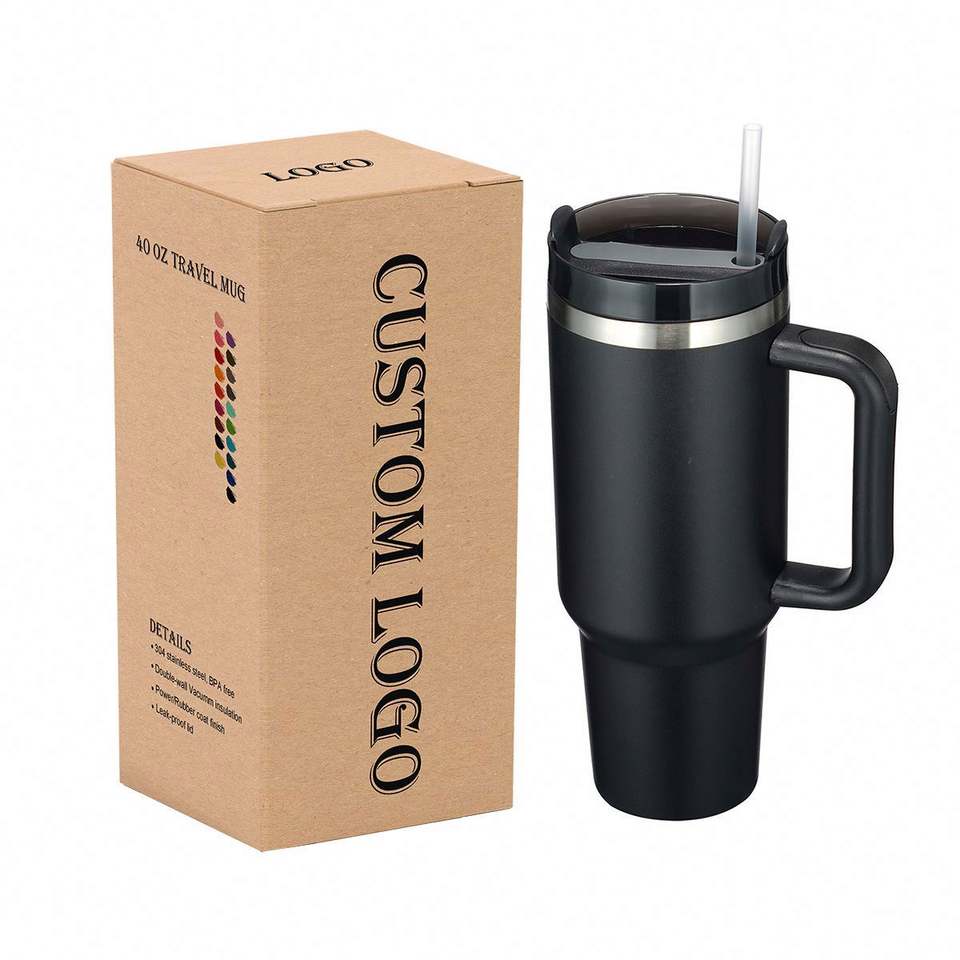 Tasse à café classique en acier inoxydable 3D 30/40 oz, gobelet thermique de voyage personnalisé écologique avec poignée et paille, isolation de 12 à 24 heures