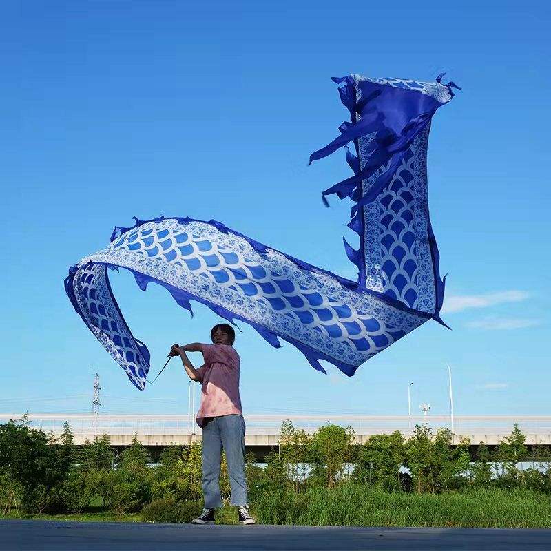 Ruban de danse du ventre 3D coloré en soie fluide pour la pratique du dragon spiralé en extérieur