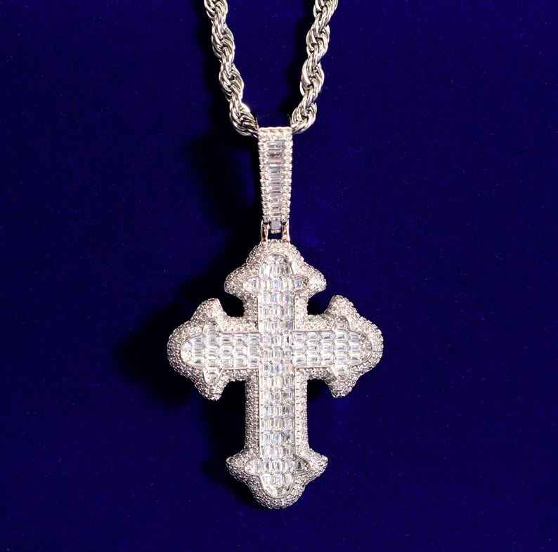 Pendentif Croix 3D pour Hommes et Femmes, Collier Croix Diamant Baguette Sertie de Diamants, Pendentif Jésus avec Chaîne Croix Gothique Hip Hop