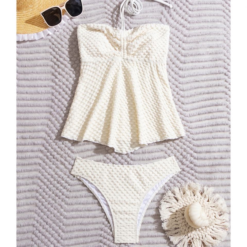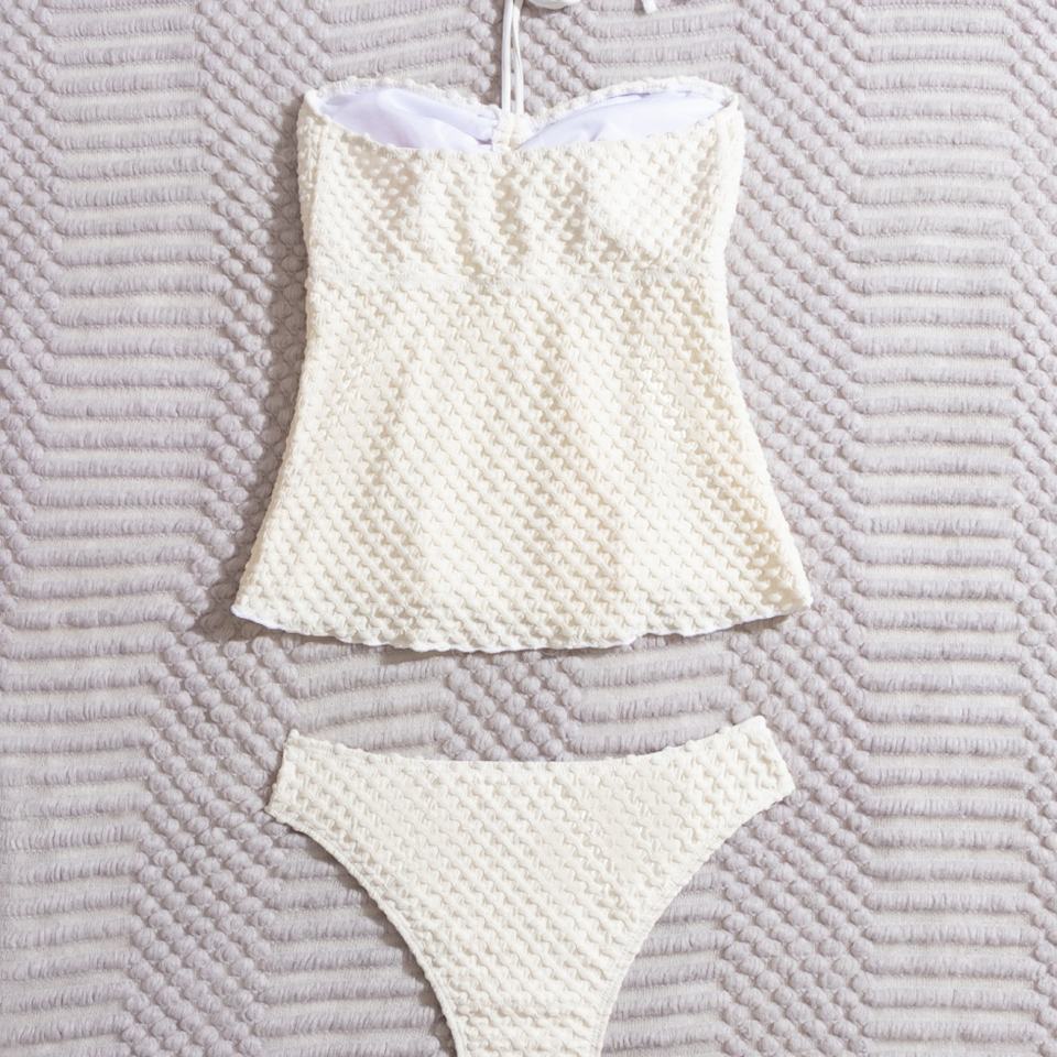 Maillot de bain 2 pièces pour femme, style bandeau torsadé sans bretelles, coupe coquine, uni, à lacets, avec logo 3D personnalisé, faible MOQ, échantillon gratuit