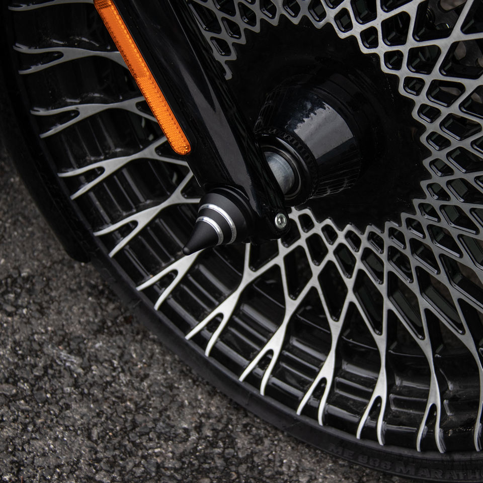 Roues avant de 23 et arrière de 18: Ces tailles spécifiques offrent un ajustement précis pour les modèles Harley Fatboy et Breakout de 2018 à 2023, assurant une installation et des performances correctes.