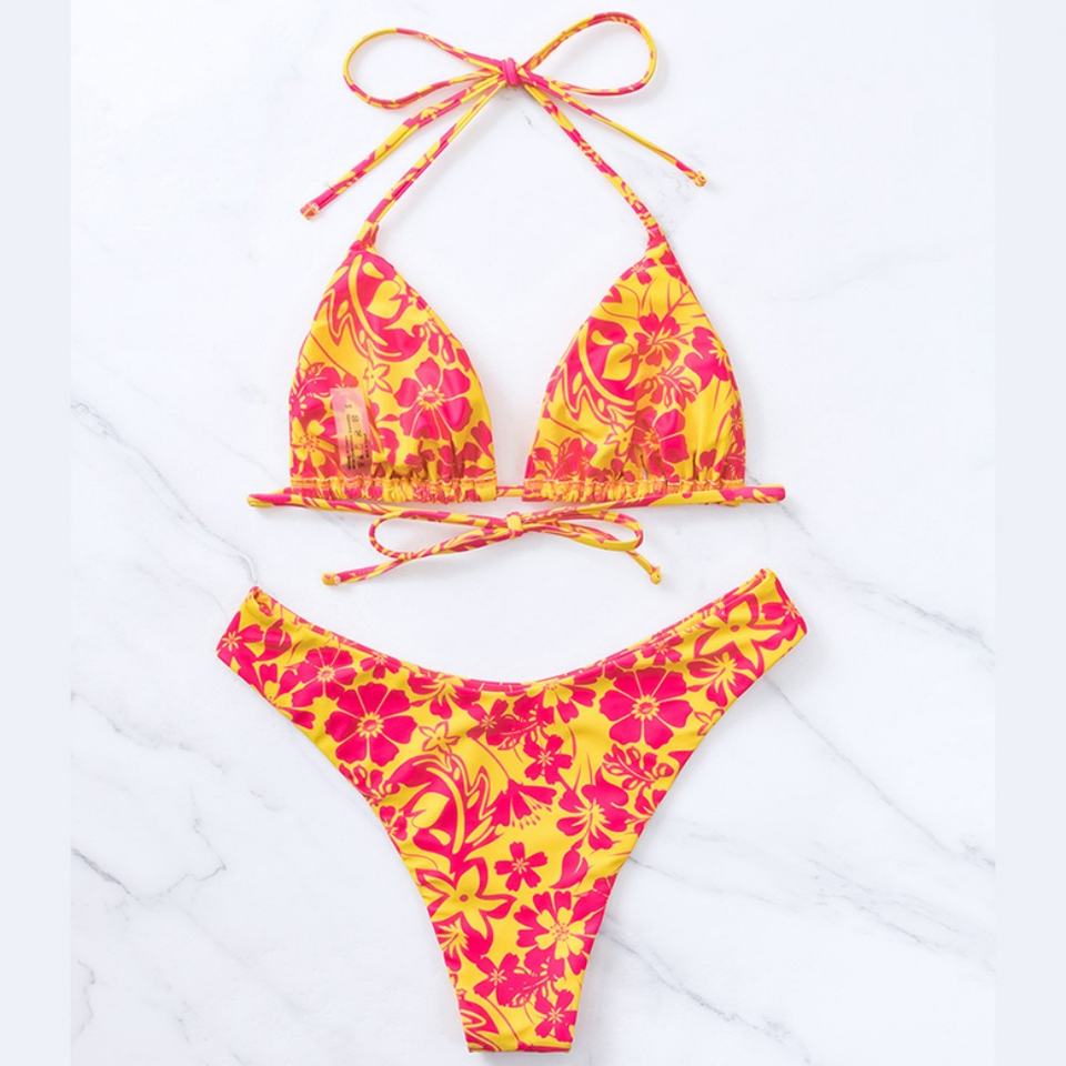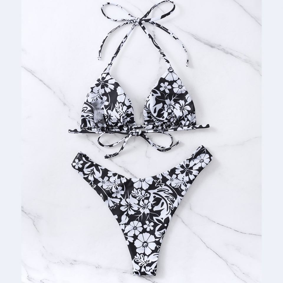 Ensemble de bikini sexy imprimé 3D personnalisé, triangle contrastant, maillot de bain brésilien deux pièces, maillot de bain rembourré, string, maillots de bain