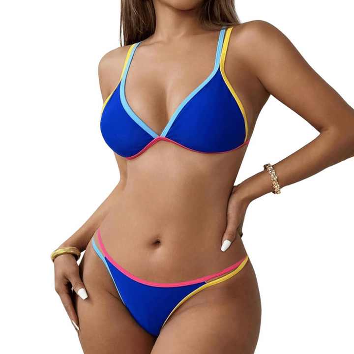 Ensemble de maillot de bain mini bikini 3D personnalisé pour femme, color block, triangle, à nouer, maillot de bain halter taille haute, fitness, vêtements de plage, fabricant